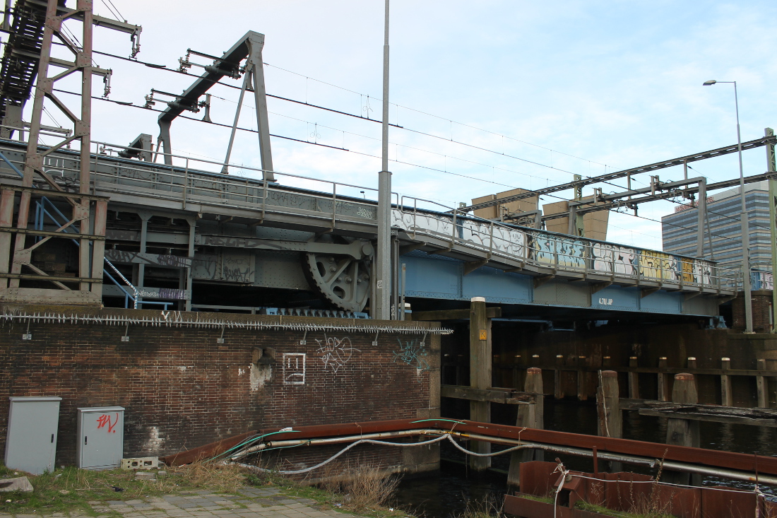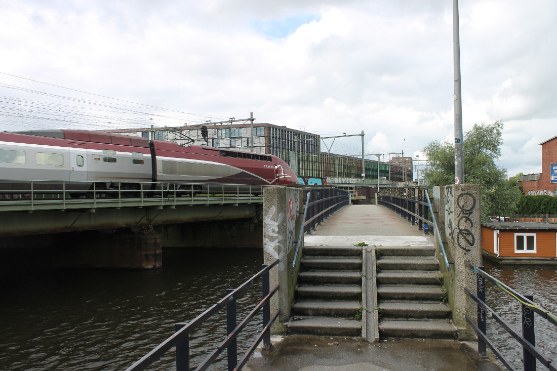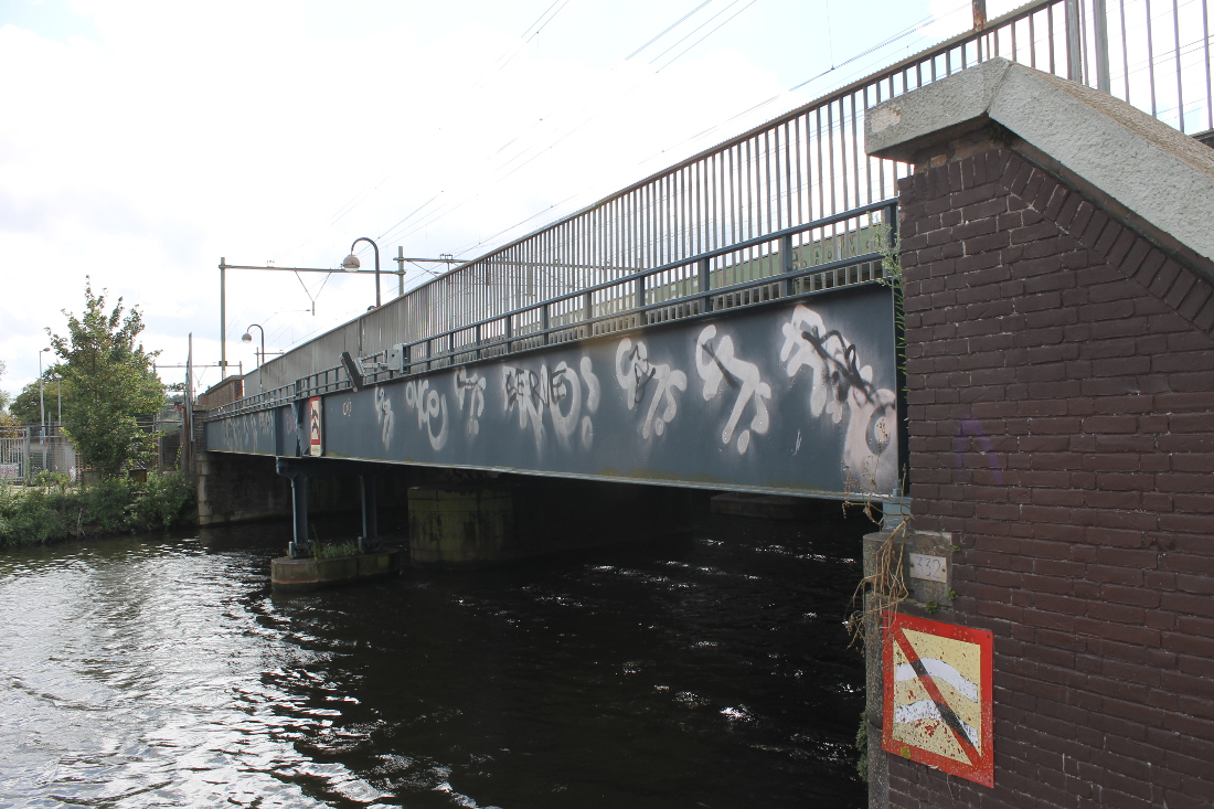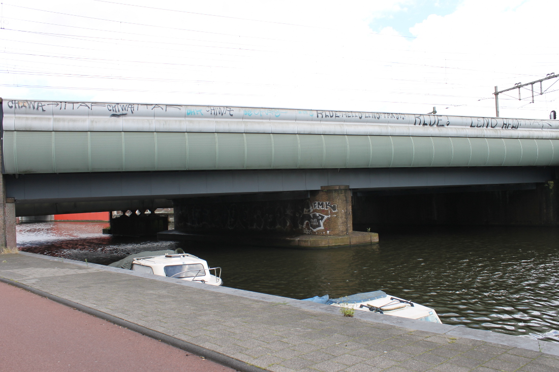 Deze brug lag niet over een verkeersweg maar over een spoorbaan. Dat spoor verbond het de Rietlanden met goederenoverslagterreinen achter de Kraijenhoffstraat en bij de Plantage Doklaan. Het spoor is inmiddels verdwenen; er ligt nu de weg tussen de Frans de Wollantstraat en de Panamalaan.