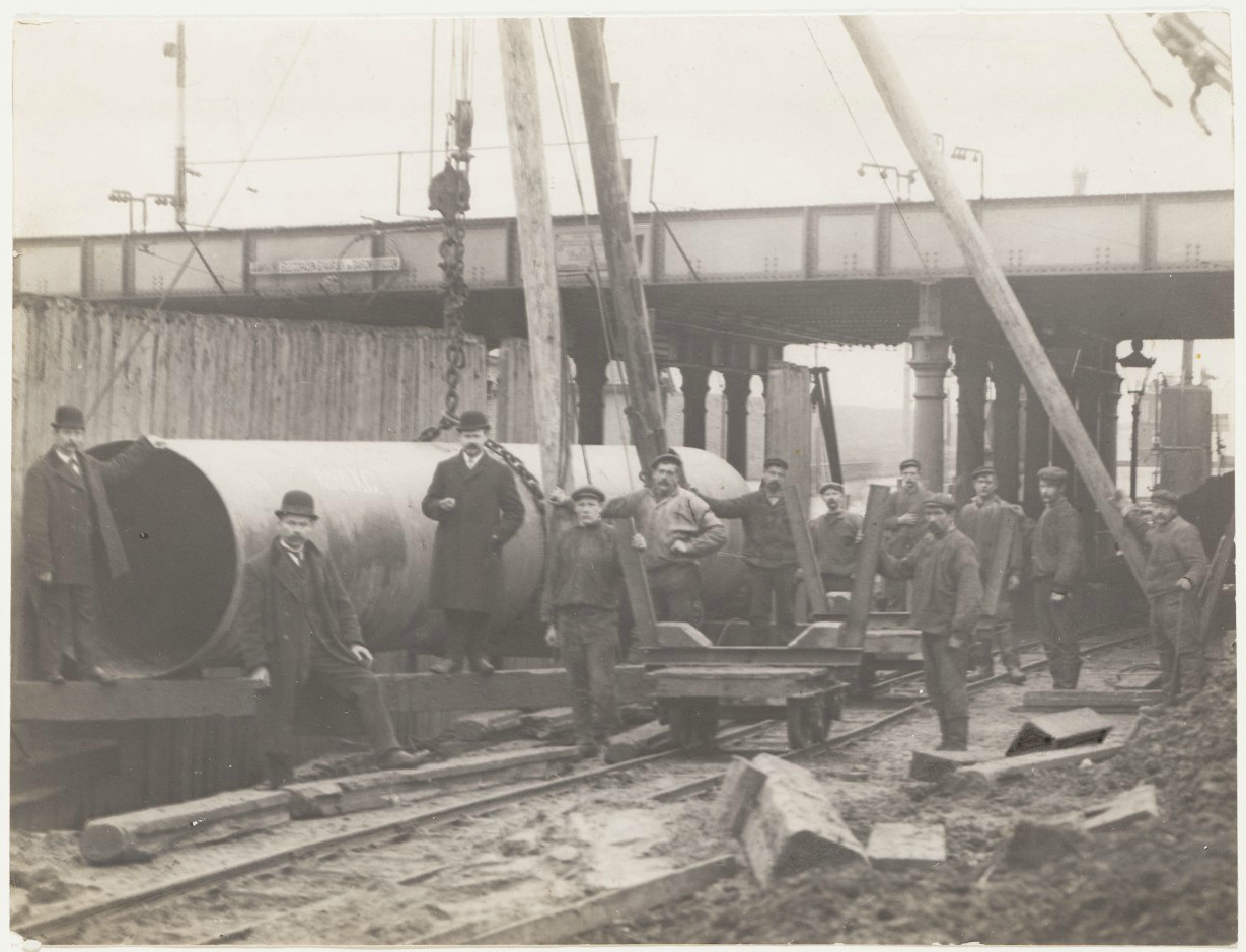 Onderdoorgang met twee openingen van elk vijf meter breed. Met klinknagels.