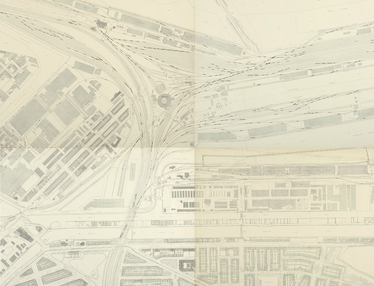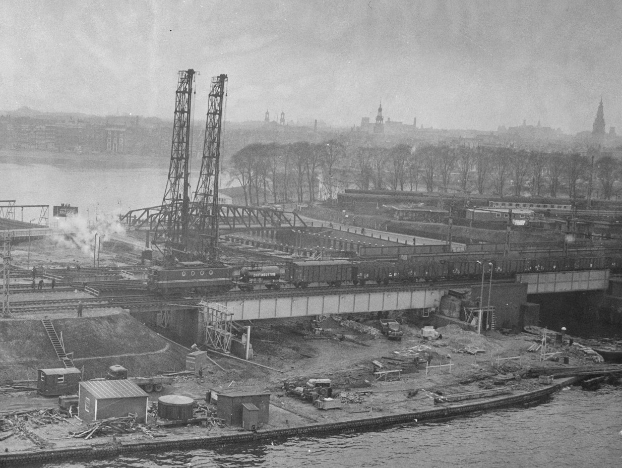 Een overzicht van de bruggen en viaducten die in de jaren ’30 werden gebouwd in het kader van de Spoorwegwerken Oost. Op deze pagina het deel tussen de stations CS en Muiderpoort.