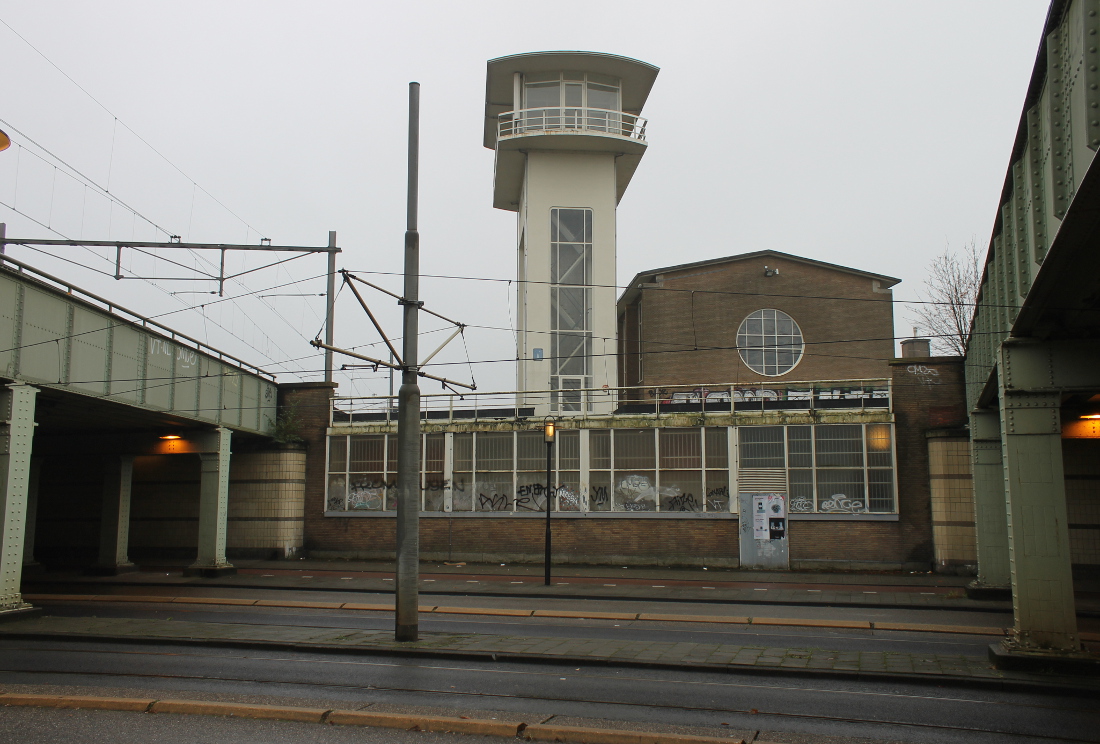 Onderdoorgang met twee openingen van elk 7,5 meter. Ook hier is de betegeling verdwenen. De viaducten gaan over de Cruquiuskade, die destijds nog uitkwam op de Cruquiusweg. De Panamalaan kwam er pas in de jaren ’90. De dienstwoningen waren voor het personeel dat het seinhuis bemande. Treinen reden onder de post door. Het gebouw is in de jaren ’80 of ’90 afgebroken.